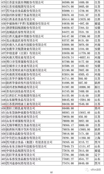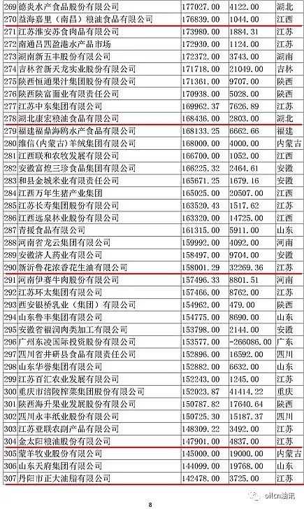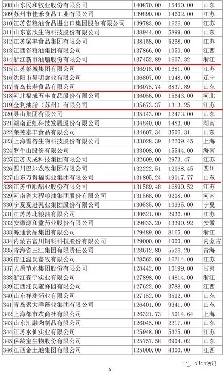 本次入圍門檻為6.7億元,多家主營油脂業(yè)務(wù)的企業(yè)上榜,山東、江蘇兩省入圍油企數(shù)量最多。