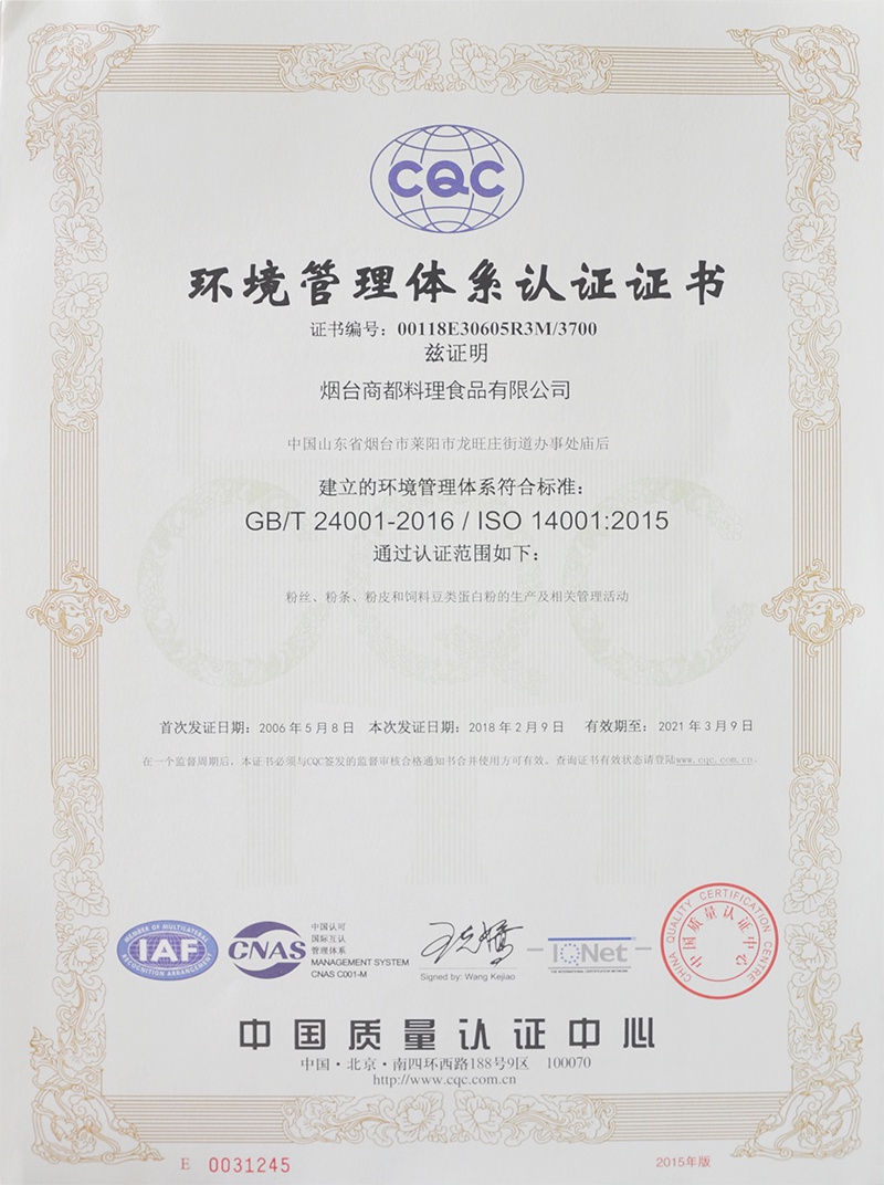 近日,CQC中國(guó)質(zhì)量認(rèn)證中心山東評(píng)審中心評(píng)審組在龍大食品工業(yè)園對(duì)煙臺(tái)商都料理食品有限公司的環(huán)境管理體系進(jìn)行驗(yàn)收。