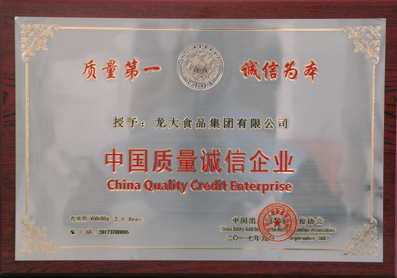 龍大集團(tuán)榮膺“2017中國(guó)質(zhì)量誠(chéng)信企業(yè)”獎(jiǎng)