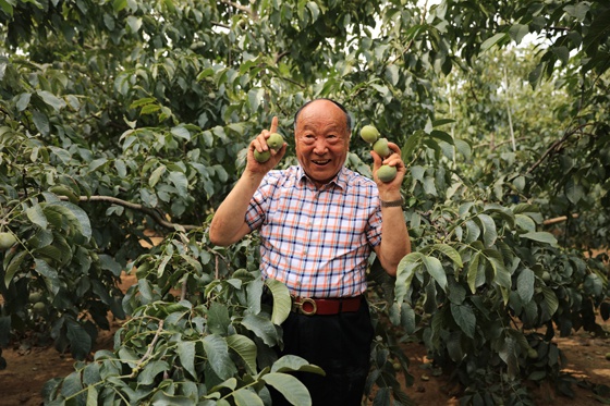 我是一枚核桃果,穿著綠油油的外套掛在樹枝上,一邊享受著9月和煦的陽光,一邊吸收著枝杈傳輸?shù)臓I養(yǎng),長的也越來越大,足有女性的拳頭大。