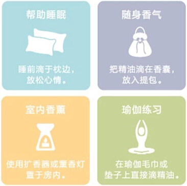 2滴純精油加水于熏香器中蒸發(fā)熏香?;虻稳霐U香容器中隨身攜帶。每滴精油為0.05ml,每瓶約可使用50次。