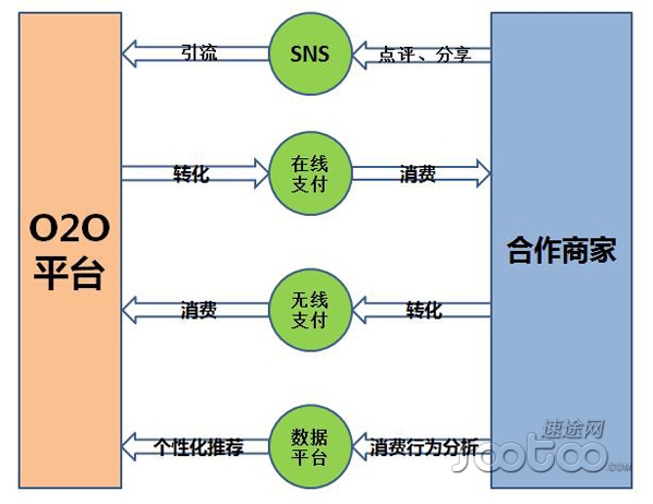 然后諸多合作商家根據(jù)O2O平臺(tái)提供的信息,實(shí)現(xiàn)服務(wù)的精準(zhǔn)定位。一方面,O2O將用戶需求轉(zhuǎn)化為實(shí)際的用戶消費(fèi),服務(wù)于合作商家;另一方面,通過(guò)合作商家的反饋信息完善平臺(tái)的功能從而更好的為用戶提供相應(yīng)的服務(wù)信息。