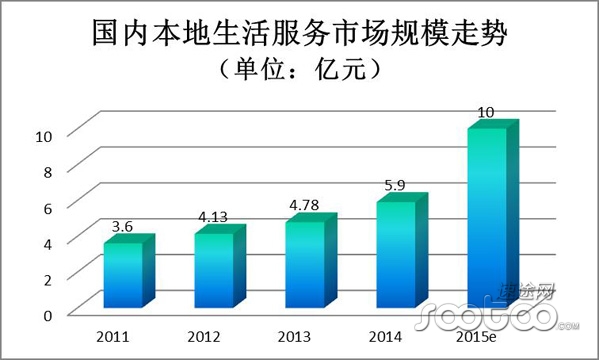 國(guó)內(nèi)本地生活服務(wù)市場(chǎng)規(guī)模持續(xù)增長(zhǎng) 2015年預(yù)計(jì)達(dá)10億元規(guī)模