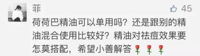 日常用1滴茶樹精油+1滴薰衣草精油+1滴洋甘菊精油+10ml荷荷巴精油混合稀釋(臨睡前取4滴左右避開眼周全臉使用),可調(diào)理肌膚敏感度,同時改善痘痘肌,讓肌膚清爽水潤。